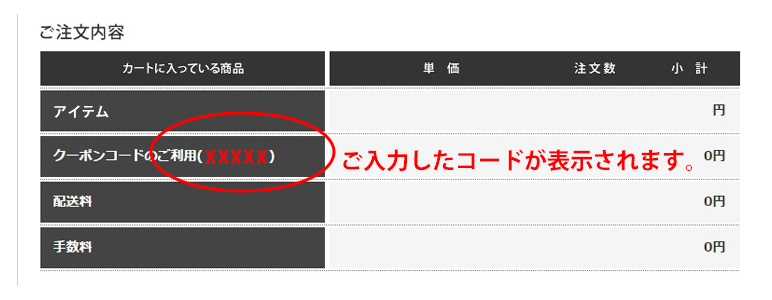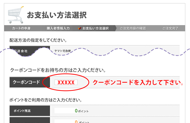 商品ページやDMなどに記載されたクーポンコードをメモしておきます。